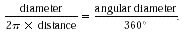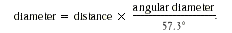 EXAMPLE: The Moons angular diameter is measured to be about 31 arc minutesa little over half a degree. From the preceding discussion, it follows that the Moons actual diameter is 380,000 km (0.52°/57.3°) 3450 km. A more precise measurement gives 3476 km.
